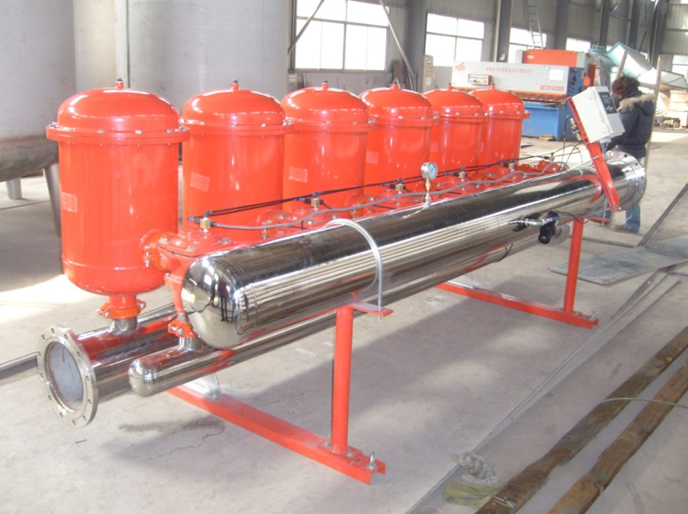 一種由過濾單元并列組合而成能自動過濾器,屬精密過濾器,其基本過濾元件是由一組帶溝槽的高科技聚丙烯塑料盤構成,相鄰盤上的溝槽棱邊形成的輪緣形成多層的過濾精度,將水中固體物截留,過濾精度為50-100μm;反沖洗時水自環(huán)狀濾盤內(nèi)部流向外側,將截留在濾盤上的污物沖洗下來,經(jīng)排污口排出。